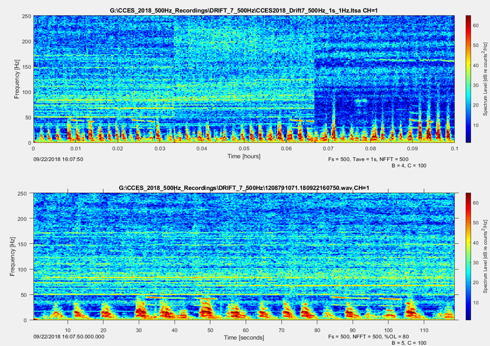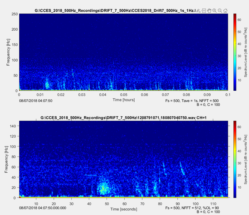 Plot Window - Displays Long Term Spectral Average (LTSA), spectrogram, spectra, and time series plots